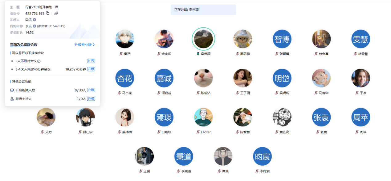 行管2101班線上班會截圖 公共管理學院供圖