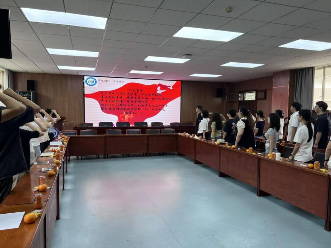 最后,全體黨員在郭暉的帶領下,重溫入黨誓詞。鏗鏘有力的誓言,進一步堅定了黨員們的理想信念,激勵畢業生黨員在未來的工作學習中始終不忘初心、牢記使命,踐行全心全意為人民服務的根本宗旨。