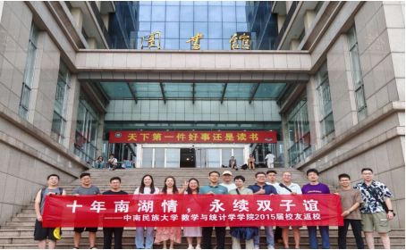 南湖微瀾映長柳,雙子塔影憶韶華。6月7日,數學與統計學學院2015屆等18位校友重返母校,以“畢業十周年·青春再相聚”為主題開展活動。來自數學與應用數學、信息與計算科學、應用統計學3個專業的陳書東等校友,學院黨委書記郭暉、黨委副書記宋榮、副院長夏永波、佘緯,教師代表田凡、婁聯堂、龍愛芳、牛艷慶、周靜和劉鹍以及學生志愿者共同參與一系列生動活潑的活動,共敘師生情誼,共繪發展新篇。