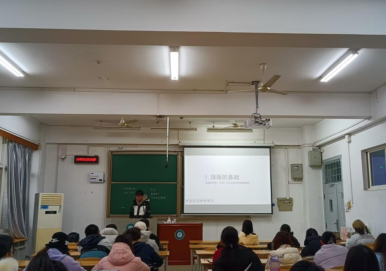 (學通社12月17日電 記者:李曉鈺、侯尚雅)12月17日下午,黨委學工部學生資訊中心于15棟教學樓308教室開展融媒體技能培訓,本次培訓邀請到了華中科技大學“博聞新聲”新聞技能學講團的武丹萍和雷孜韜進行《校園人物專訪》、《推文排版美化與設計》專題講解。參與本次培訓的有中南民族大學黨委學工部劉倩文老師、學工部學生資訊中心新聞中心、新媒體部全體同學及其他部門相關同學。