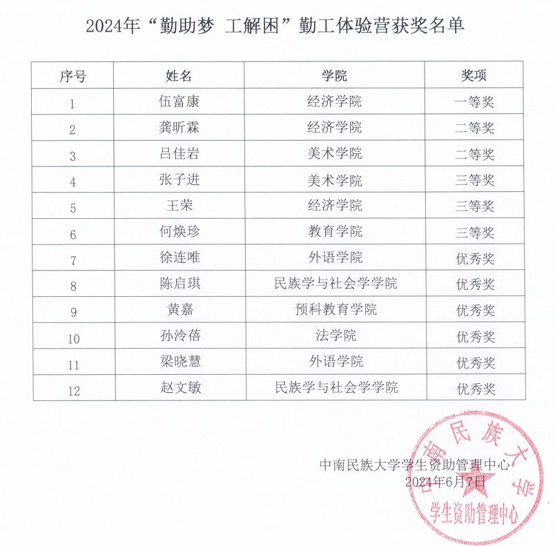 請以上獲獎選手于6月17日至6月21日在工作時間(周一至周五:早上8:00-12:00;下午14:30-17:30)到大學生活動中心三樓學生資助管理中心辦公室領取獎狀。