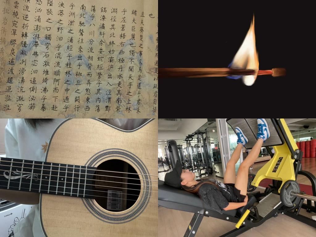 文體計劃要求成員在文娛活動與體育活動的范圍內(nèi),自行選擇樂器、繪畫、練字、運動等活動,每天以圖片、視頻或音頻的形式上傳打卡。活動期間,學(xué)生們遵循活動細則打卡,形式多樣,內(nèi)容豐富,動則舞蹈鍛煉,靜則練字繪畫,還有生動的樂器演奏等。