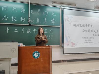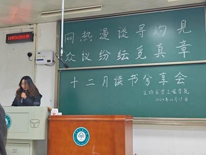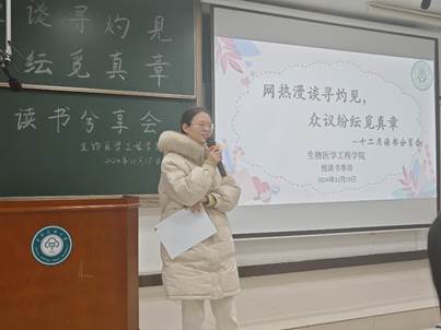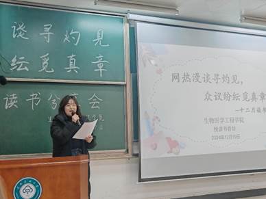 (文/佘江,圖/董雅迪)為了培養(yǎng)同學們的批判性思維,激發(fā)理工科學生的人文素養(yǎng)與綜合思考能力,引導同學們正確看待網絡、社會熱點事件,樹立正確的價值觀,生物醫(yī)學工程學院于12月19日下午,在15棟205教室舉辦了主題為“網熱漫談尋灼見,眾議紛紜覓真章”的讀書分享會。讀書小組指導老師張朱珊瑩、院團委書記葉穎、院團委副書記魏邱霞以及院團委學生會主席團成員出席本次活動。本次活動由2024級阮詩涵主持。