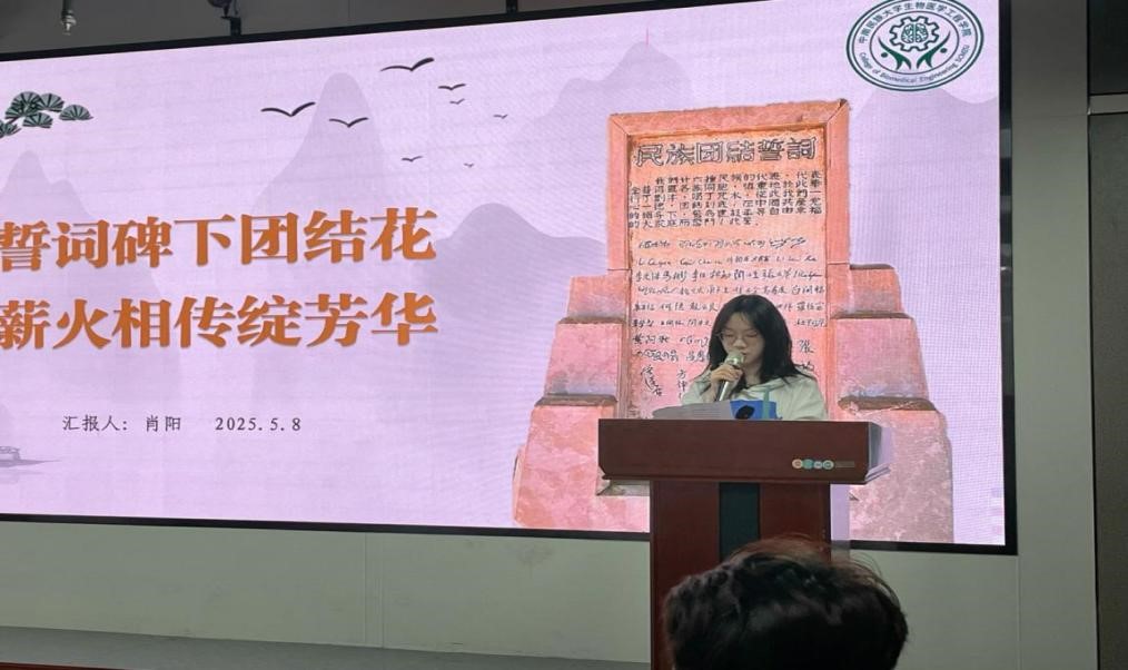 生醫2202班肖陽同學在演講中提到了云南普洱民族團結誓詞碑的歷史。她講述了1950至1951年間各族代表赴京觀禮并立碑,凝聚起各民族團結一心、攜手奮進的堅定意志。這一精神在七十余年的傳承中,持續激勵著無數人奮勇前進。她呼吁新時代青年以“青春之我”“奮斗之我”,守護民族團結之花。