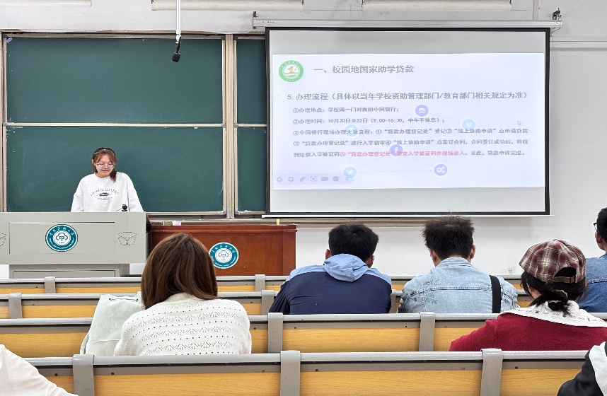(文/陳煊文,圖/趙禹衡 陳煊文)為順利推進2025年校園地國家助學貸款的新貸和續貸專項工作,幫助同學們深入了解助貸政策,強化大學生的誠信意識與責任擔當,10月18日,我院在15棟120教室開展了國家助學貸款政策和“以誠為本,以信待人”宣講活動。輔導員陳卉丹、勤工部全體人員和預申請校園地貸款的近40余名同學參與了此次活動,活動由2025級盧靜主持。