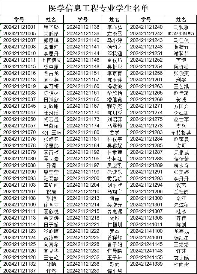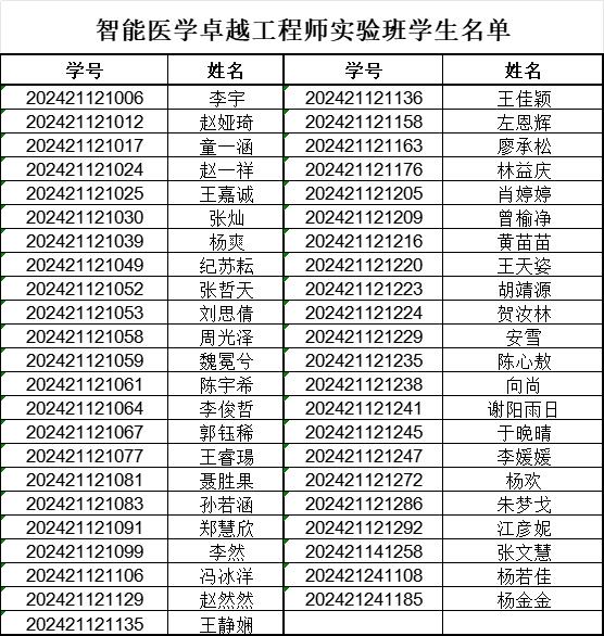 按照學校《關于做好2025年本科學生大類專業分流工作的通知》和學院《生物醫學工程學院2024級大類專業分流實施方案》要求,我院2024級大類專業在學生自愿申請的基礎上進行了專業分流,分流結果為生物醫學工程專業161人,醫學信息工程專業113人,智能醫學卓越工程師實驗班45人,共319人,公示如下:
