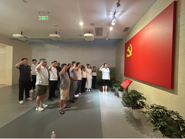 在陳列館一樓鮮紅的黨旗前,黨員們重溫入黨誓詞,莊嚴(yán)宣誓,表達不忘初心、牢記使命的信念和決心。