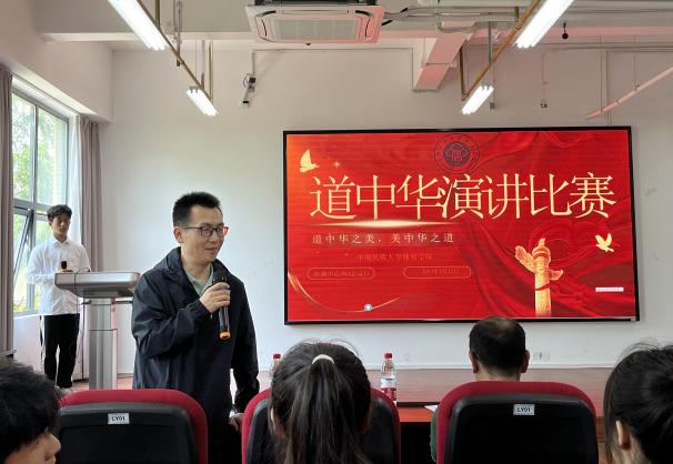 為全面貫徹習(xí)近平新時代中國特色社會主義思想,引導(dǎo)廣大學(xué)生緊扣時代脈搏、增強(qiáng)文化自信,深度融入并推動鑄牢中華民族共同體意識,積極傳承并大力弘揚(yáng)中華優(yōu)秀傳統(tǒng)文化,同時展現(xiàn)新時代青年的愛國情懷和良好的精神風(fēng)貌,我院認(rèn)真籌備,于4月22日中午在17棟304會議室舉行了道中華演講比賽。本次演講比賽邀請黨委學(xué)生工作部副部長方明、文學(xué)與新聞傳播學(xué)院黨委副書記牛磊、體育學(xué)院學(xué)工辦主任唐文翰擔(dān)任評委。學(xué)院黨委副書記孫冰、輔導(dǎo)員丁如佳出席活動。