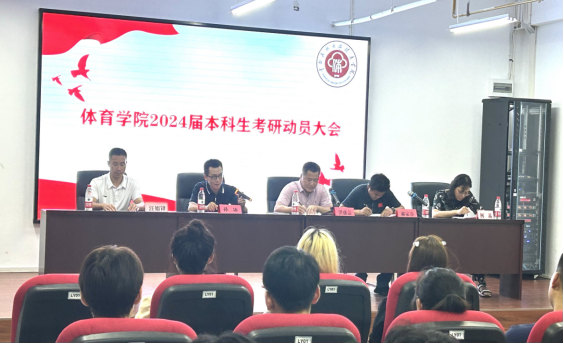 (通訊員 尹希希)為進一步提高我院2024屆本科生考研積極性,幫助同學(xué)們明確考研目標,豐富考研經(jīng)驗,我院于9月3日晚19時在17號樓304會議室召開2024屆本科生考研動員大會。體育學(xué)院黨委書記洪盛志,黨委副書記、院長郝家春,黨委副書記孫冰,2001班班導(dǎo)師汪如鋒,2002班班導(dǎo)師柯茜出席大會并發(fā)表講話,2024屆本科生輔導(dǎo)員丁如佳主持會議,2024屆全體本科生參會。