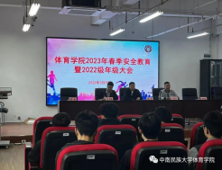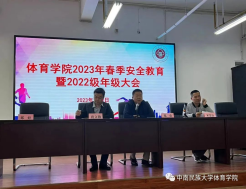 (通訊員:張蒙)為加強學生紀律和規矩意識,強化責任擔當,堅定理想信念,早日成長成才,3月9日上午8時20分,體育學院2023年春季安全教育暨2022級年級大會于體訓中心304-2會議室召開。本次大會由體育學院黨委副書記鄭重主持,輔導員唐文翰、班導師宋忠良及2022級全體學生參會。