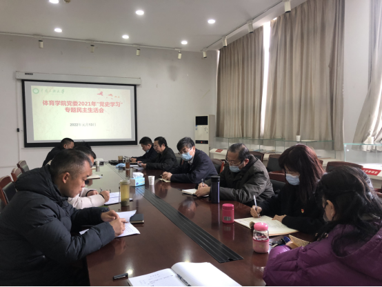 (作者:趙卿)2022年1月13日,體育學(xué)院召開了2021年度黨員領(lǐng)導(dǎo)干部“黨史學(xué)習(xí)教育”專題民主生活會(huì),校黨委書記邊境同志、體育學(xué)院班子成員參加會(huì)議。督導(dǎo)組成員蔡永灝、徐明蓉親臨指導(dǎo),全程參與了本次民主生活會(huì)。會(huì)議由體育學(xué)院黨委書記楊騫同志主持。