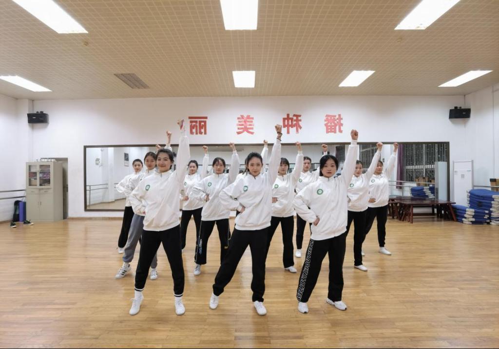疫情防控形勢下,民族健身操隊派出體育學院健美操專項班18、19、20級學生共12名運動員代表學校參與此次比賽。雖受疫情影響,健美操隊選拔人數和備戰人數都有所減少,但并沒有影響隊伍整體實力的發揮。本次參賽的領隊為體育學院楊騫書記,教練為體育學院張津銘老師、熊炎老師。賽前,隊員們在不影響自己學習的情況下充分利用課余時間積極準備,刻苦訓練,同時克服各種困難,發揮團隊協作的精神,最終以飽滿的精神狀態迎接此次比賽,并獲得佳績。