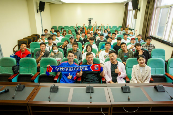 第二期:2021年5月23日15:00,在中南民族大學(xué)15棟教學(xué)樓教師發(fā)展中心多功能廳邀請(qǐng)前中國(guó)男子足球國(guó)家隊(duì)隊(duì)員、曾效力于八一隊(duì)、上海申花、河南建業(yè)、青島黃海、武漢三鎮(zhèn)等多支職業(yè)足球俱樂(lè)部的職業(yè)足球運(yùn)動(dòng)員姜坤。主題:足球運(yùn)動(dòng)與教育。沙龍活動(dòng)中,姜指導(dǎo)給我們講解了現(xiàn)代足球最新的技戰(zhàn)術(shù)發(fā)展理念和比賽陣型,與此同時(shí),他分享了在八一隊(duì)效力的故事:八一隊(duì)效力時(shí)期既接受了軍人教育,也接受職業(yè)足球教育,并告訴同學(xué)們,學(xué)習(xí)是很重要的事情。在踢球的同時(shí),也要不斷地看書、學(xué)習(xí)。互動(dòng)交流環(huán)節(jié),同學(xué)們針對(duì)自己當(dāng)前所面臨的足球困惑向姜指導(dǎo)請(qǐng)教,姜指導(dǎo)面對(duì)同學(xué)們提出的問(wèn)題一一進(jìn)行解答,結(jié)合自己的經(jīng)歷、經(jīng)驗(yàn)為同學(xué)們指導(dǎo)。結(jié)束后,姜指導(dǎo)與參與此次沙龍的同學(xué)合影。