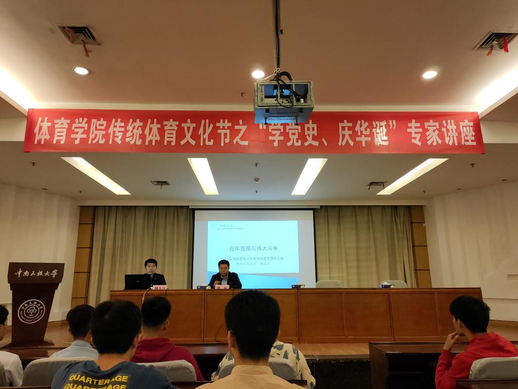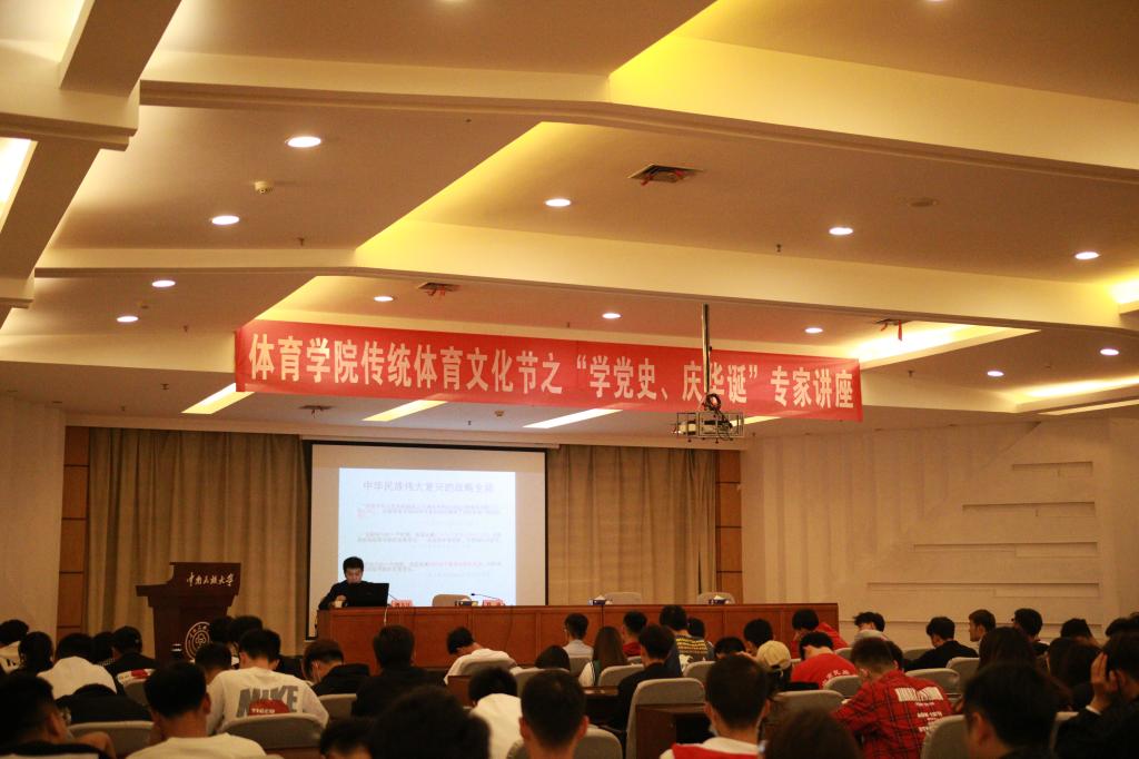 2021年4月23日下午18:30,體育學院在潤良報告廳舉辦了民族傳統體育文化節之“學黨史、慶華誕”專家系列講座活動。