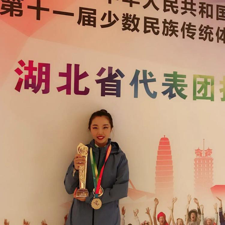 關筱妍是全宿舍第一個獲得保研資格的上岸者,全年級排名第四的大學四年平均績點讓她的學霸稱號當之無愧。運動會賽場上她更是健美操專項健將,2017年-2018年全國全民健身操舞大賽名列前茅、2019年全國少數民族傳統體育運動會表演項目金牌、湖北省大學生運動會民族健身操規定項目、自選項目一等獎……飛揚的身姿、曼妙的腳步留下了動人瞬間。