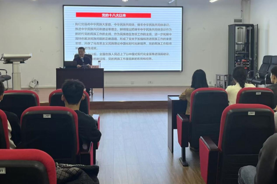 開班儀式結束后,學院黨委書記洪盛志以“正確認識中華民族共同體,鑄牢中華民族共同體意識”為題講授第一講黨課。在授課中,他深入淺出地講解了中華民族共同體的內涵、鑄牢中華民族共同體意識的重大意義、大學生在推進中華民族共同體建設中的實踐要求,引導同學們正確理解中華民族多元一體的特點。洪盛志書記通過豐富的歷史案例和生動的現實故事,讓同學們深刻感受到中華民族共同體的力量。