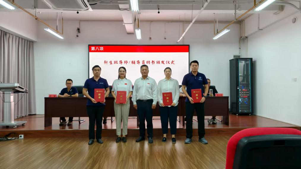 典禮上,洪盛志宣讀本科生班導師和研究生輔導員聘任決定,指出他們將成為新生學業上的“引路人”、生活上的“守護者”、成長上的“陪伴者”,并為受聘本科生班導師和研究生輔導員頒發聘書。隨后,新生班導師代表上臺寄語,為新生送上暖心祝福與成長指引。