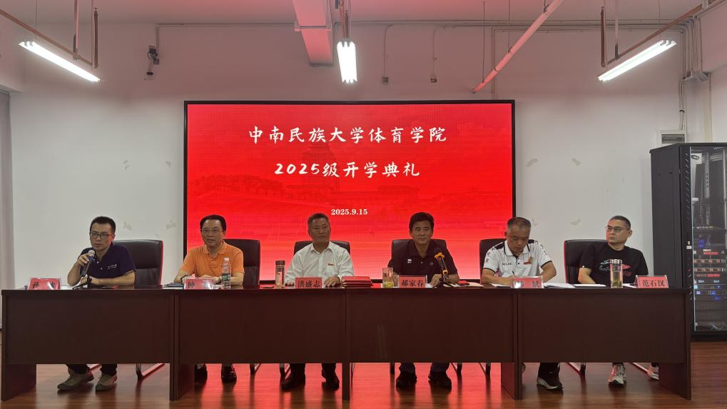 2025年9月15日17:30,中南民族大學體育學院2025級新生開學典禮在17-304隆重舉行。學院黨委書記洪盛志、院長郝家春、專職組織員鐘利、黨委副書記孫冰、副院長韓斌、副院長范石漢,2025級本科生班導師,以及2025級全體本科新生出席典禮。本次典禮由孫冰主持。