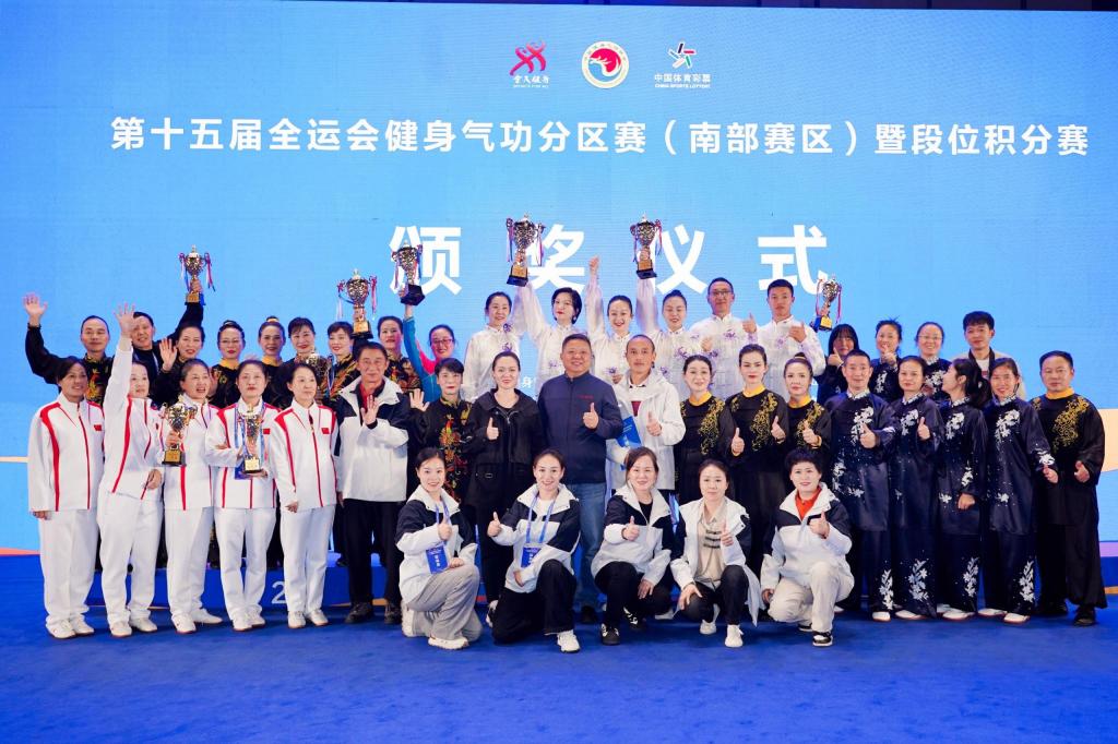2024 年11月5 - 6日,第十五屆全運會健身氣功分區賽(南部賽區)暨段位積分賽在四川峨眉山中信國安體育館盛大舉行。此次賽事由國家體育總局健身氣功管理中心、中國健身氣功協會主辦,四川省社會體育指導中心、樂山市體育局、峨眉山市人民政府承辦,吸引了6個省區市的21支代表隊、165名運動員齊聚一堂,共同角逐。
