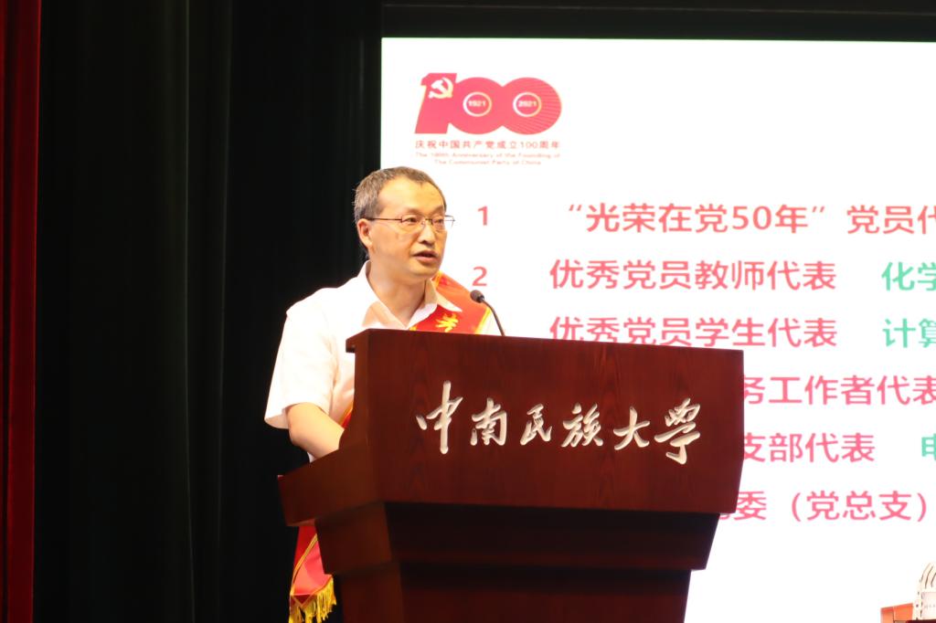 邊境指出,100年來(lái),中國(guó)共產(chǎn)黨團(tuán)結(jié)帶領(lǐng)人民創(chuàng)造了中華民族發(fā)展史、人類社會(huì)進(jìn)步史上最為璀璨輝煌的奇跡。在中國(guó)共產(chǎn)黨的領(lǐng)導(dǎo)下,中南民族大學(xué)走過70年的辦學(xué)歷程,為黨和國(guó)家培養(yǎng)社會(huì)主義建設(shè)者和接班人作出了應(yīng)有的貢獻(xiàn)。成績(jī)來(lái)之不易,未來(lái)更需努力。站在新的起點(diǎn),推進(jìn)學(xué)校各項(xiàng)事業(yè)持續(xù)高質(zhì)量發(fā)展面臨新的機(jī)遇和挑戰(zhàn),要以高質(zhì)量的黨建引領(lǐng)推動(dòng)學(xué)校實(shí)現(xiàn)高質(zhì)量發(fā)展。他強(qiáng)調(diào),要堅(jiān)持把黨的政治建設(shè)擺在首位,結(jié)合黨史學(xué)習(xí)教育加強(qiáng)黨的創(chuàng)新理論學(xué)習(xí),深刻感悟習(xí)近平新時(shí)代中國(guó)特色社會(huì)主義思想的偉力,更加自覺地用以武裝頭腦、指導(dǎo)實(shí)踐、推動(dòng)工作;要堅(jiān)持和加強(qiáng)黨對(duì)高校的全面領(lǐng)導(dǎo),鞏固好發(fā)展好發(fā)揮好黨的組織優(yōu)勢(shì),為全面貫徹落實(shí)黨的教育方針提供堅(jiān)強(qiáng)政治保證和組織保證;要堅(jiān)持把立德樹人作為根本任務(wù),以鑄牢中華民族共同體意識(shí)為主線,進(jìn)一步加強(qiáng)和改進(jìn)思想政治工作,著力構(gòu)建以學(xué)生成長(zhǎng)成才為中心的“三全育人”生態(tài)系統(tǒng)。他號(hào)召大家更加緊密地團(tuán)結(jié)在以習(xí)近平同志為核心的黨中央周圍,在國(guó)家民委黨組和湖北省委、省政府的領(lǐng)導(dǎo)下,扛起新使命、彰顯新?lián)?dāng),不忘初心、奮發(fā)有為、扎實(shí)工作,不斷開創(chuàng)學(xué)校事業(yè)發(fā)展的新局面。