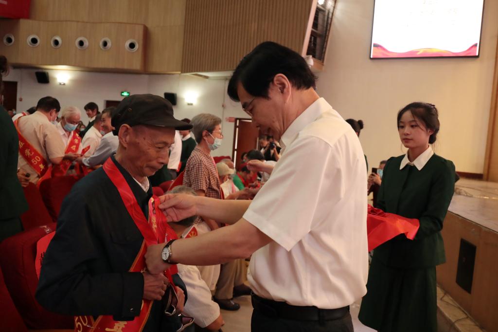 校長(zhǎng)李金林為老黨員頒發(fā)“光榮在黨50年”紀(jì)念章。劉虹 攝