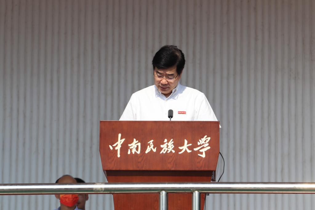 “我和我的祖國,一刻也不能分割……”9月17日上午,在悠揚的歌聲中,2022級學生開學典禮在南湖中心體育場隆重舉行,來自全國各地的8558名新生線上線下相聚雙塔下,齊聲合唱《我和我的祖國》,滿懷期待開啟嶄新征程。校黨委常委,相關職能部門負責人,各學院主要負責人、學生工作負責人參加了開學典禮。典禮由副校長杜冬云主持。