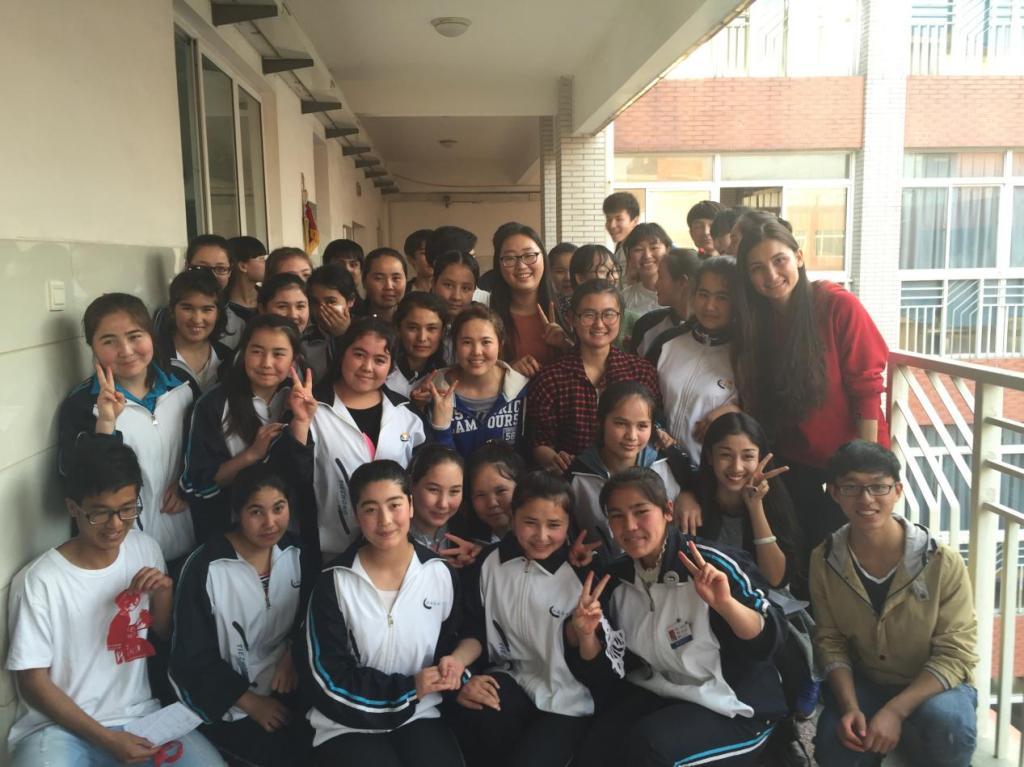 瑪日耶姆古麗在武漢東湖中學教內高班學生說普通話。