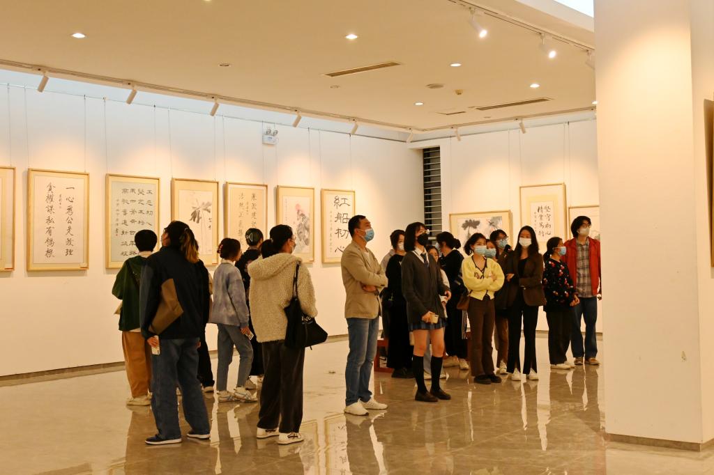 11月3日8時,我校光谷美術館1號展廳一早便迎來了數十名觀展者,學校全體黨委常委和各學院師生代表前來欣賞在此舉行的“學習貫徹黨的二十大精神 建設新時代清廉學校”主題書畫展。