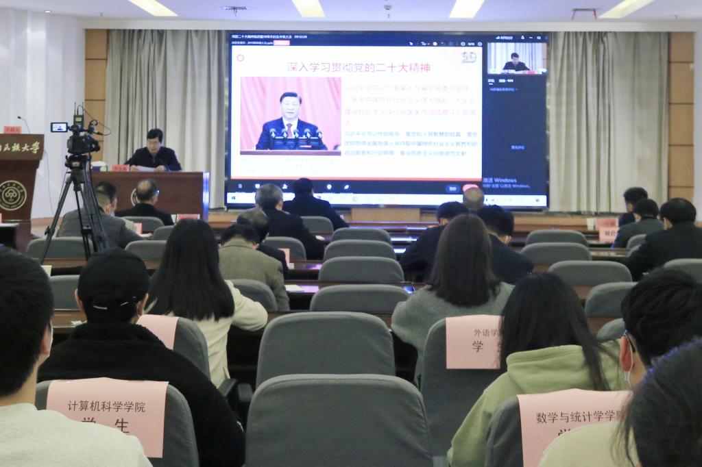11月24日晚,學校召開全體2019級本科生學習貫徹黨的二十大精神宣講會暨年級大會。校領導李金林、杜冬云、韓葉盛、宋發軍,相關職能部門負責人,各學院院長、本科教學副院長、2019級輔導員和學生代表在主會場學術交流中心參加會議。全體2019級班導師、其他2019級本科生在學院會議室和教室分會場通過視頻直播參加會議。會議由副校長杜冬云主持。