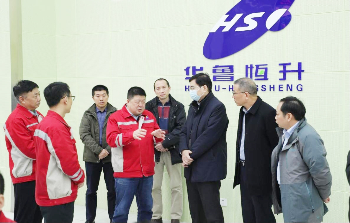 李金林(右三)一行在常懷春(左四)陪同下實地考察華魯恒升集團。 劉毅攝