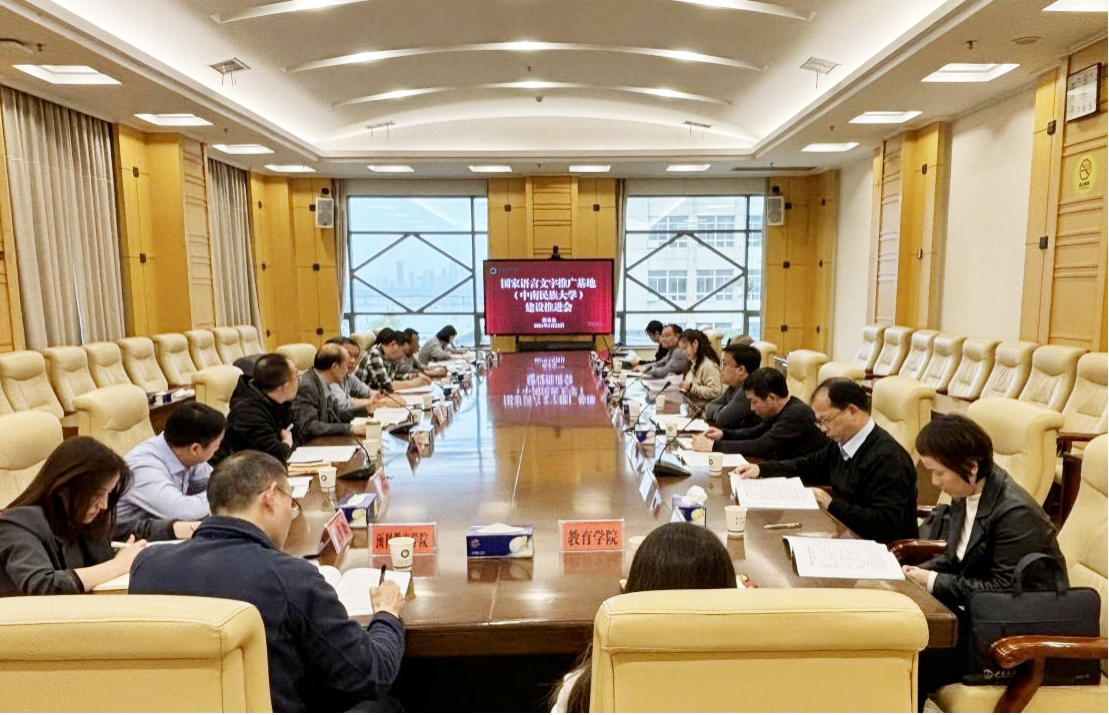 胡軍浩介紹了國家語言文字推廣基地申報及近期建設情況,通報了我校國家語言文字推廣基地五年建設規劃和學校“典耀中華”主題讀書行動實施方案,就基地建設的組織架構、指導思想、總體目標、主要思路、建設任務、保障措施和各單位的任務分工進行了傳達。文學與新聞傳播學院院長陶喜紅領學了國家民委關于加強國家通用語言文字相關研究的文件。
