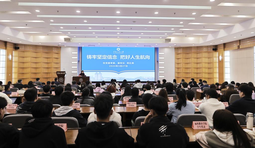 讀書不覺已春深,一寸光陰一寸金。3月27日晚,學(xué)校舉行2023級學(xué)生年級大會暨2024年春季學(xué)期開學(xué)第一課教育活動。校黨委常委、副校長李紅燕以“鑄牢堅定信念 把好人生航向”為主題授課,校黨委常委、副校長方德斌主持活動。