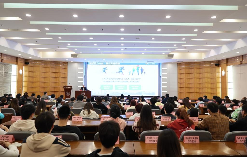宋發軍總結回顧了2022級學生一年多的學習生活和成長得失,從“大二年級的階段性特征、當前面臨的形勢任務、應該如何行動”三個方面為同學們進行了深入淺出、富于啟迪的講解。他指出,大二年級是隱性的分化期、重要的轉折期和關鍵的抉擇期,是大學的“十字路口”,“如何選擇,方向在哪,怎樣走好”是每個2022級同學都要思考的重大問題。他強調,同學們要準確把握當前面臨的形勢任務,立足國際國內大環境和自身實際,一要做到明確目標,找準前進方向;二要做到惜時勤學,練就過硬本領;三要做到嚴于律己,培養強健身心;四要做到志存高遠,投身偉大建設,練就過硬本領,將“小我”融入“大我”,與時代同頻共振,與國家同向而行。
