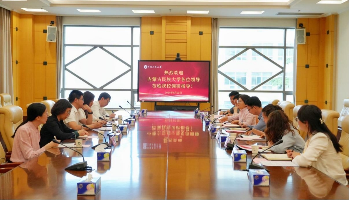 方德斌代表學校對陳英松一行的到訪表示歡迎,簡要介紹了學校的基本情況和來華留學生培養總體情況。他表示,我校與內蒙古民族大學同為國家民委與當地政府共建的綜合型民族高校,希望兩校以此次調研工作為契機,建立長期交流、合作機制,充分利用各自優勢,共同為民族院校的來華留學生工作發揮積極作用。國際合作與交流處處長孫曉麗對我校來華留學生教育管理工作進行了詳細匯報。