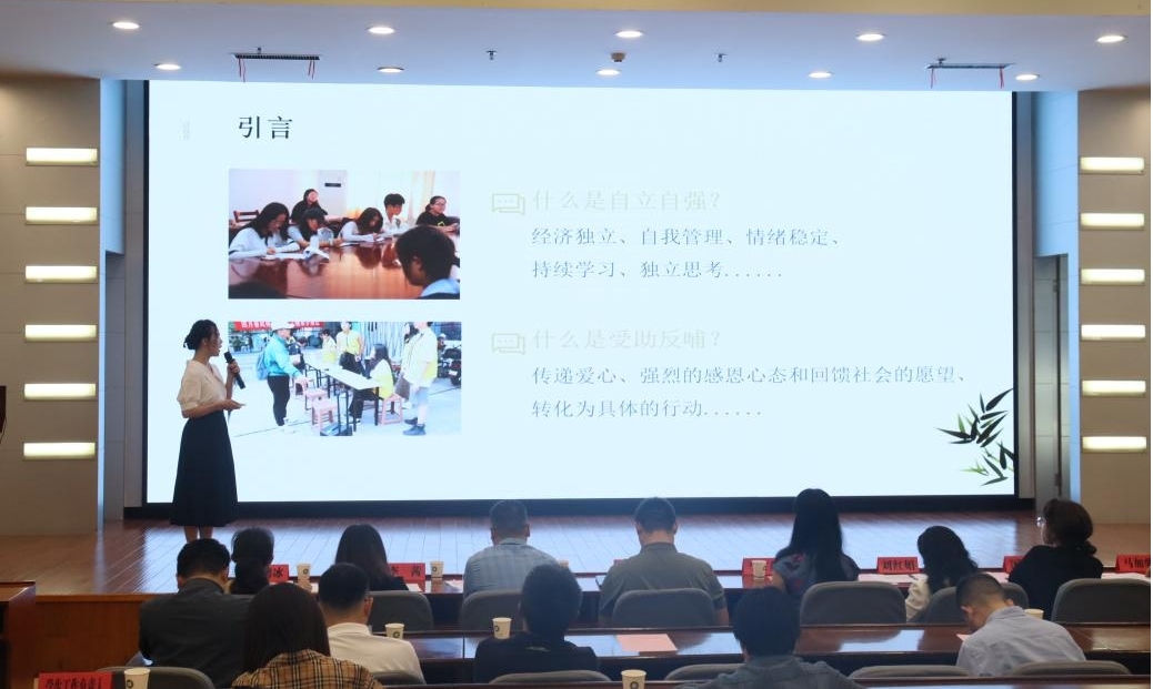 比賽中,有選手表示,黨和國家資助政策的幫助讓自己的夢想種子得以萌發并茁壯成長,而她也熱心地分享果實,在“藍信封”活動中傾聽小朋友的煩惱,在支教活動中用音樂陪伴他們。還有選手說,在接受黨和國家幫助的同時,自己熱心社會公益,積極組建團隊,參與2023慈者愛慧者行武漢站徒步籌款項目。參賽同學講述了自己用實際行動反哺社會、為更多需要的人帶去溫暖與幫助的故事,讓觀眾深深動容。