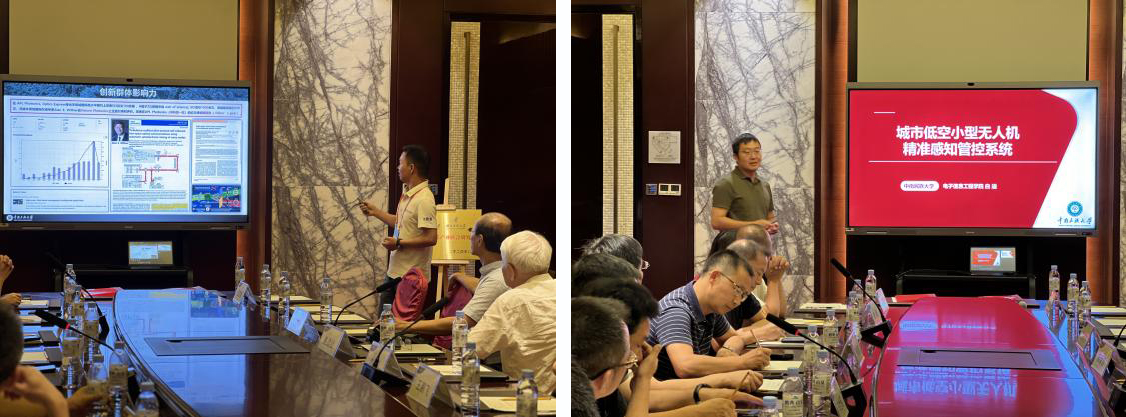 研討中,湖北民族大學智能科學與工程學院黨委書記孫先波教授從辦學發展現狀、校企合作模式以及基于合作共贏的開源辦學思路等多方面報告了湖北民族大學智能科學與工程學院建設與發展情況。湖北民族大學智能科學與工程學院副院長錢楷教授報告了學院人才培養與杰普特實驗室建設情況以及科研成果。我校電子信息工程學院青年教師倪文軍副教授代表團隊匯報了湖北省創新群體項目實施情況,詳細介紹了跨空海介質光聲通信技術的研究思路和近期科研進展。我校電子信息工程學院青年教師白迪博士代表團隊匯報了城市低空小型無人機精準感知管控系統研究進展。姚建銓院士在了解了2所民族大學信息學科服務區域經濟和社會發展的情況后,介紹了其本人近期研究工作和科研的選題交流,回應了青年學者的科研困惑,鼓勵青年學者要承擔起推動科技進步和產業發展的重要使命,并結合所見所聞所感向民族大學的人才培養和學科建設、區域社會和經濟管理部門提出了建議。
