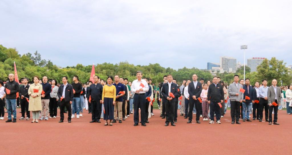 10月1日,我校舉行“強國復興有我 青春挺膺擔當”慶祝中華人民共和國成立75周年升國旗儀式。校黨委書記邊境,校黨委副書記、校長劉義,校黨委常委、副校長李紅燕,黨政辦公室、黨委宣傳部、黨委學生工作部、團委、黨委保衛部、教務處、研究生院等職能部門負責人,各教學單位負責人和青年學生代表1000余人齊聚南湖中心體育場,共同慶祝新中國成立75周年。