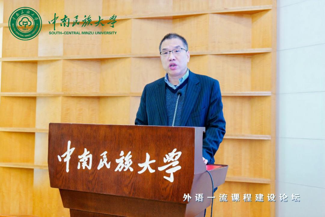 宋發軍致辭,對與會專家及師生表示熱烈歡迎,并介紹了學校和外語學院的基本情況。他指出,一流課程是培養一流人才的基礎,是推動外語專業建設和外語學科持續發展的關鍵。希望通過本次論壇,能夠匯聚各方智慧,共同探討和分享外語課程建設的最新理念、實踐成果與未來趨勢。