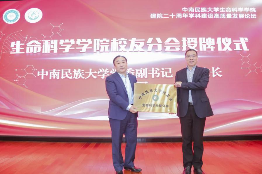 宋發軍代表學校向生命科學學院校友分會授牌。