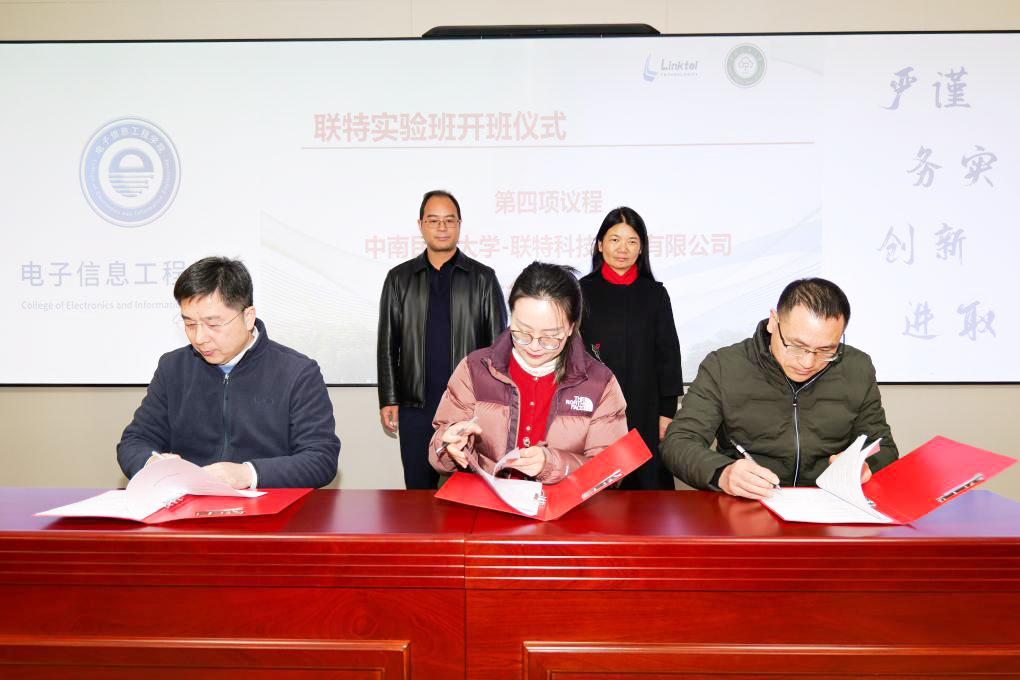 我校電子信息工程學(xué)院院長楊春勇介紹了實(shí)驗(yàn)班學(xué)員情況及組織架構(gòu)。聯(lián)特公司、我校資產(chǎn)經(jīng)營管理有限公司和電子信息工程學(xué)院相關(guān)代表簽署三方合作協(xié)議。