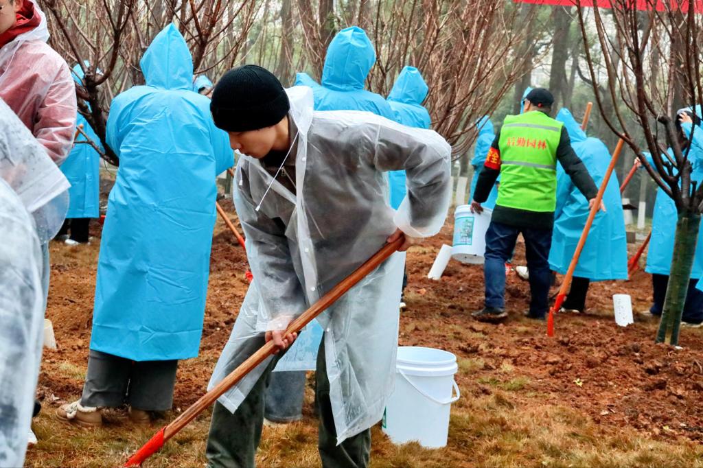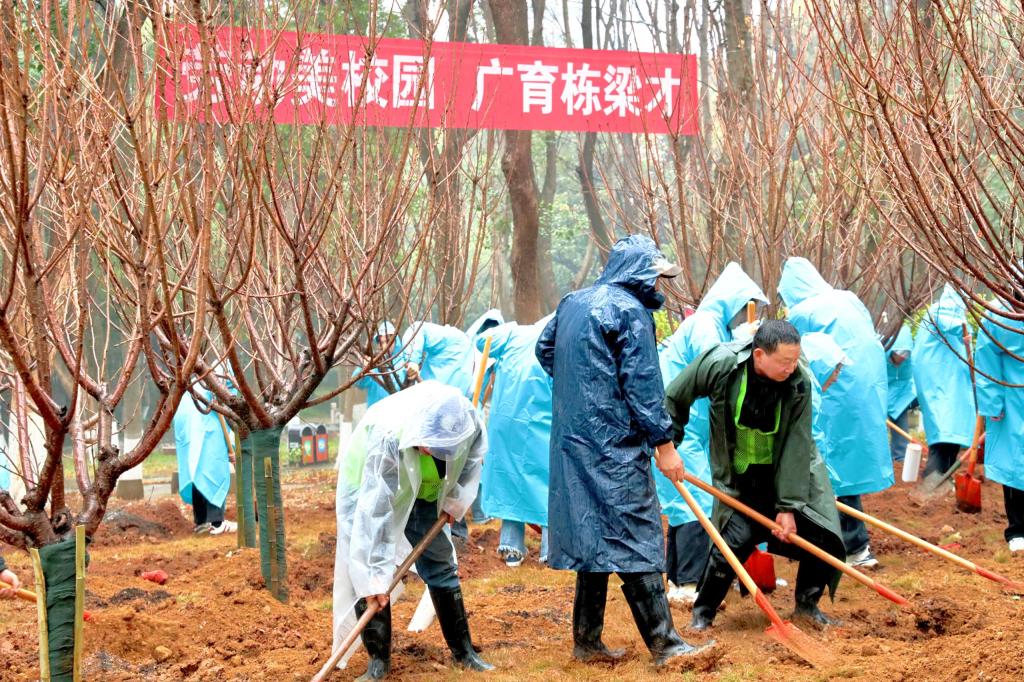 春雨中,師生們共同栽培櫻花樹、澆灌石榴園。大家分工協作,挖坑、扶苗、培土、澆水,現場一片熱火朝天的景象。很快,新栽的樹苗在春風中挺立,為校園又增添了一抹生機。