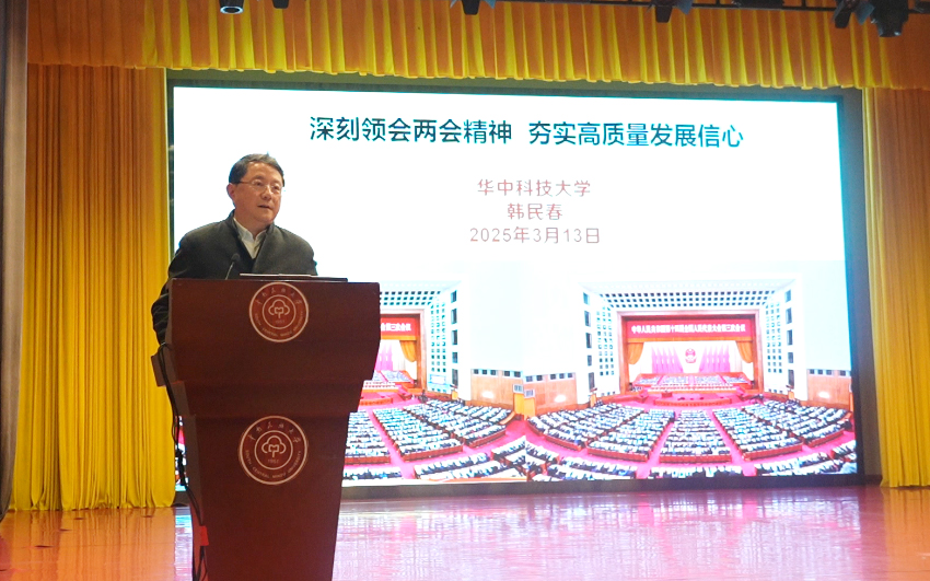第十四屆全國政協(xié)委員、民建湖北省委會副主委、華中科技大學(xué)經(jīng)濟學(xué)院教授韓民春傳達學(xué)習(xí)了全國政協(xié)十四屆三次會議主要精神,重點圍繞習(xí)近平總書記在看望參加政協(xié)會議的民盟、民進、教育界委員時的重要講話精神進行了專題講解,梳理了《政府工作報告》中明確的2025年十大重點任務(wù),并結(jié)合自己歷年提案情況分享了參會的所見、所感、所悟。