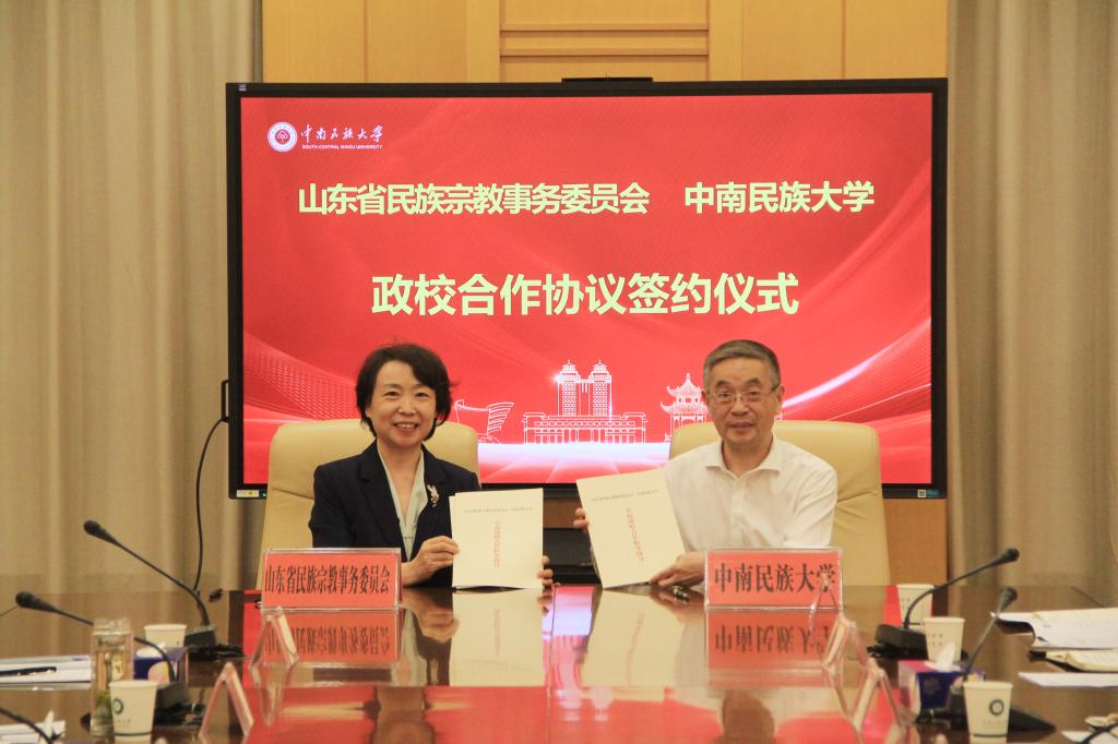 4月23日下午,我校與山東省民族宗教事務委員會圍繞推動政校合作等事宜進行深入交流座談,并簽署政校合作協議。山東省民宗委主任曹金萍,我校黨委書記徐業勤,黨委副書記、校長劉義,山東省民宗委相關處室負責人,我校相關職能部門負責人在學術交流中心參加座談。徐業勤主持座談和簽約儀式。