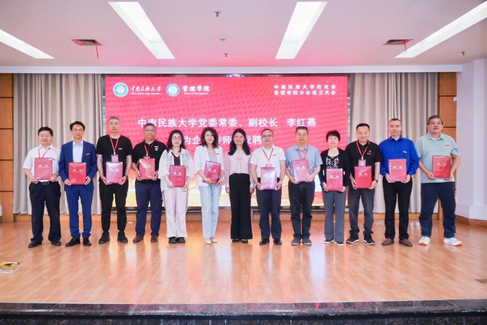 方德斌為管理學院校友分會授牌。李紅燕為12名行業導師代表頒發聘書。