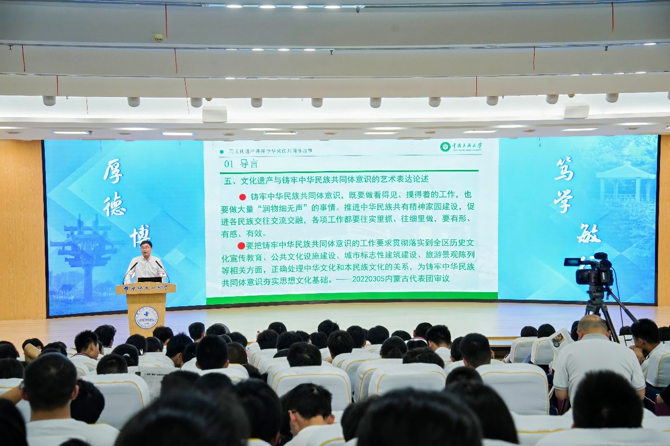 在鑄牢中華民族共同體意識(shí)宣講會(huì)上,我校民族學(xué)與社會(huì)學(xué)學(xué)院民族學(xué)專業(yè)博士生導(dǎo)師、教育部哲學(xué)社會(huì)科學(xué)重大課題攻關(guān)項(xiàng)目首席專家、國(guó)家民委“中青年英才”李然教授為華師一附中400余師生作了《用好文化遺產(chǎn),鑄牢中華民族共同體意識(shí)》的主題報(bào)告。報(bào)告通過對(duì)文化遺產(chǎn)的分類介紹解讀了我國(guó)各民族交融匯聚成多元一體中華民族共同體的歷史脈絡(luò),幫助華師一附中的優(yōu)秀學(xué)子更加深入地了解中華民族發(fā)展歷史和中華文化,將“五個(gè)認(rèn)同”教育轉(zhuǎn)化為清晰可感的精神之旅。