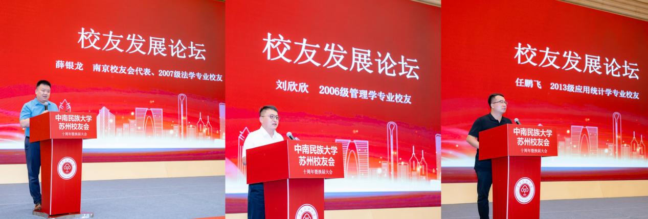 本次大會以“構建校友與母校命運共同體”為主題,特別設置校友發展論壇。薛銀龍、黃國軍、司志勇、劉欣欣、任鵬飛等校友結合自身經歷,分享了助力學校與校友發展的實踐經驗。現場播放了學校系列招生宣傳視頻,并發布《關于公開征集中南民族大學“十五五”發展規劃意見建議的公告》。蘇州校友會同步發出倡議書,倡導校友成為母校發展的見證者、學弟學妹的引路人、校友互助的踐行者、母校建設的參與者。