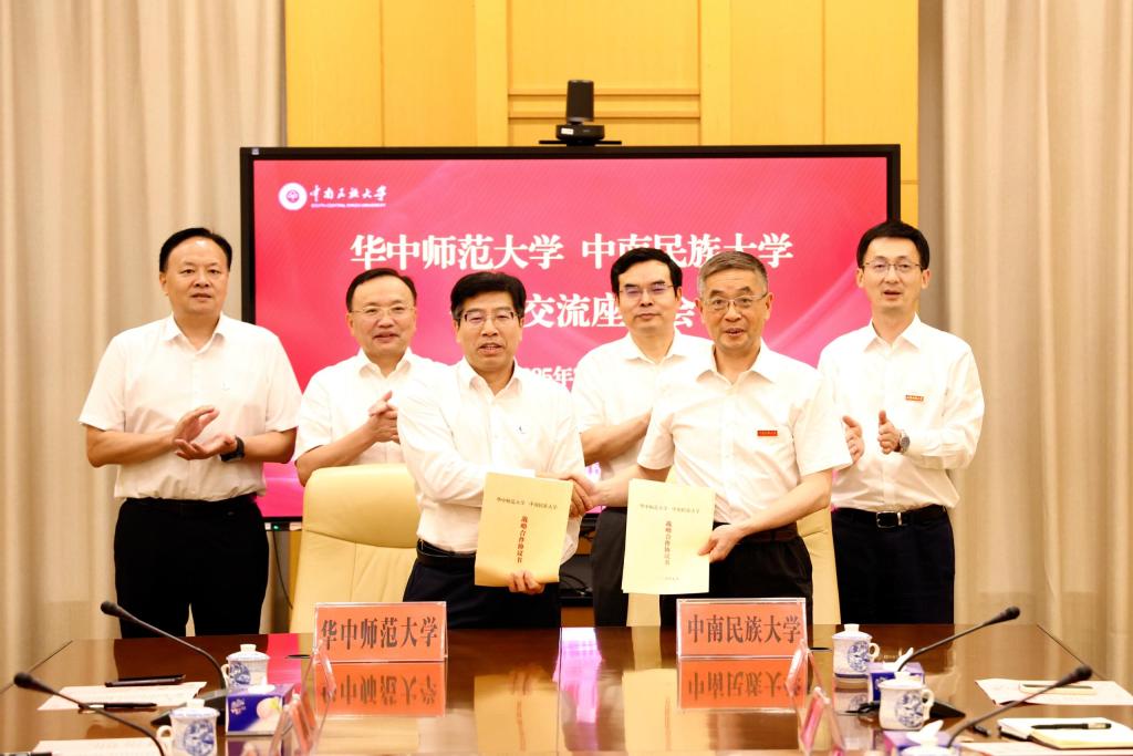 7月1日,我校與華中師范大學戰略合作協議簽約儀式在學術交流中心舉行。華中師范大學黨委書記夏立新,黨委副書記、校長彭雙階,黨委常委、副校長周鵬程,我校黨委書記徐業勤,黨委副書記、校長劉義,黨委常委、副校長方德斌,以及兩校相關職能部門負責人參加。徐業勤主持座談會。