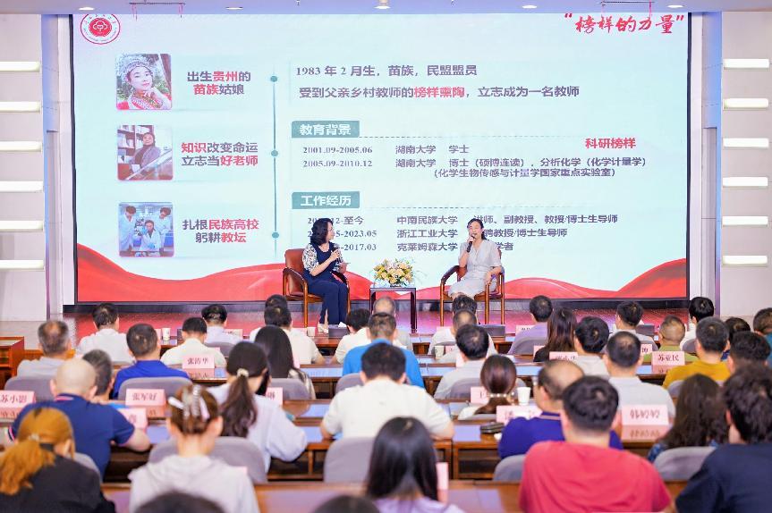 6月30日下午,由校工會主辦、各基層工會協辦的第十期“榜樣的力量”先進人物系列訪談在學術交流中心舉行。校黨委副書記、副校長、工會主席宋發軍出席活動。本次訪談邀請了藥學院院長付海燕,科學研究發展院院長張道洪,民族學與社會學學院院長陳祥軍,中華民族共同體學院院長李從浩,副院長李學保、方清云作為訪談嘉賓。活動由外語學院張佩老師主持,吸引了各學院師生代表等百余人參加。