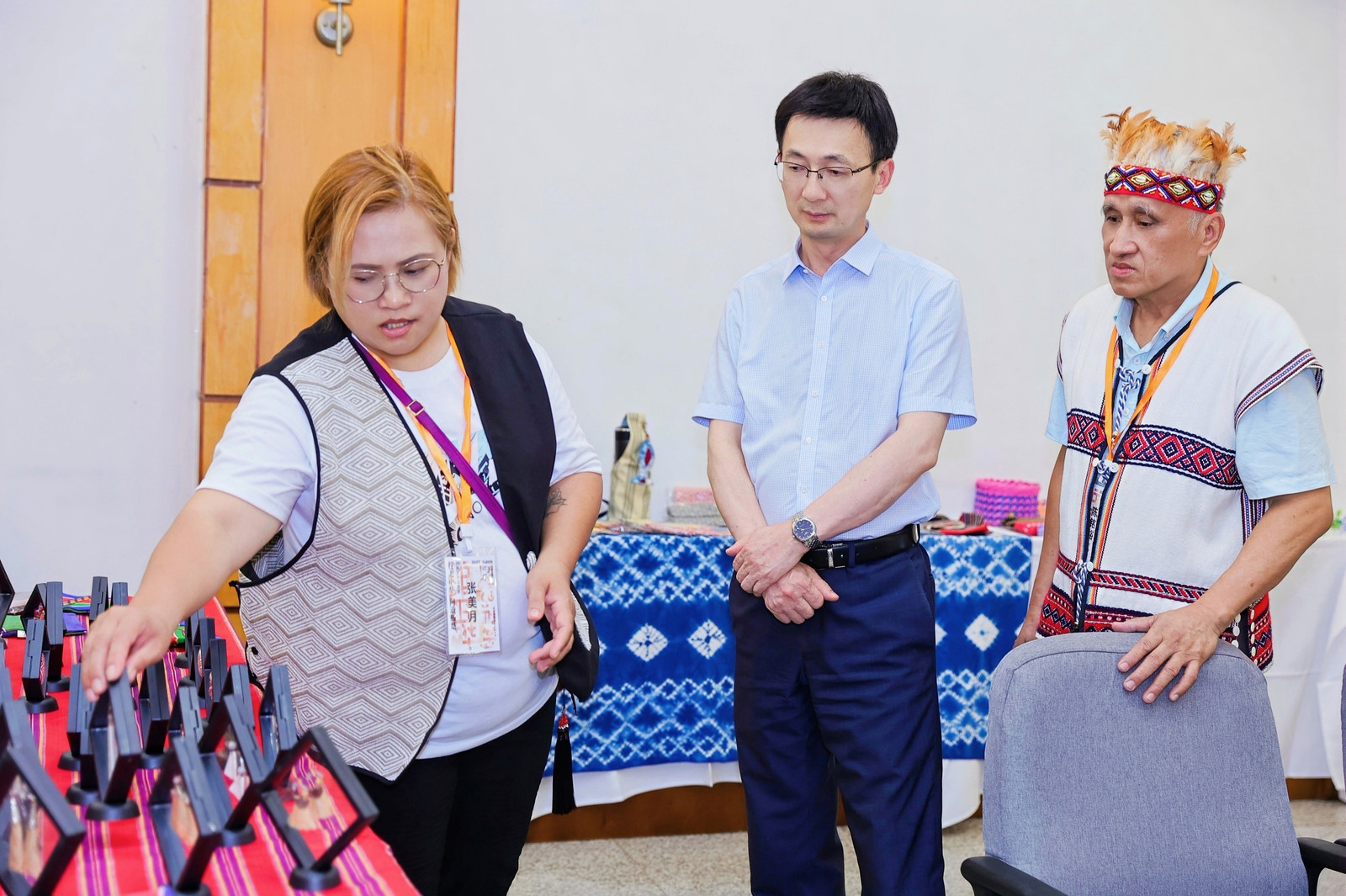 臺灣嘉賓介紹傳統工藝品。 港澳臺辦供圖