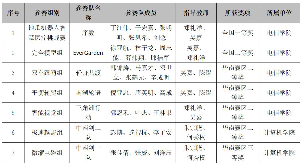 我校第二十屆全國(guó)大學(xué)生智能汽車競(jìng)賽獲獎(jiǎng)信息表
